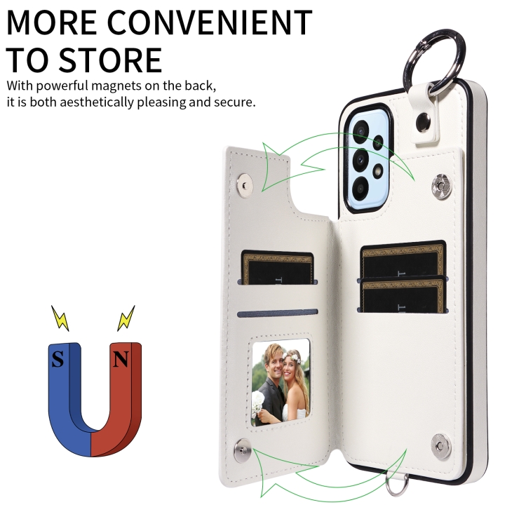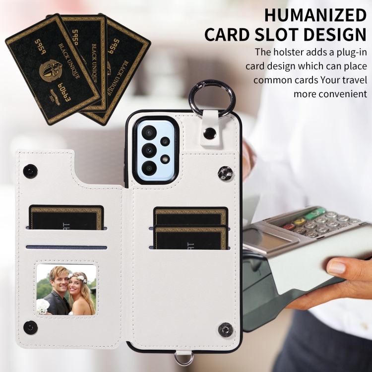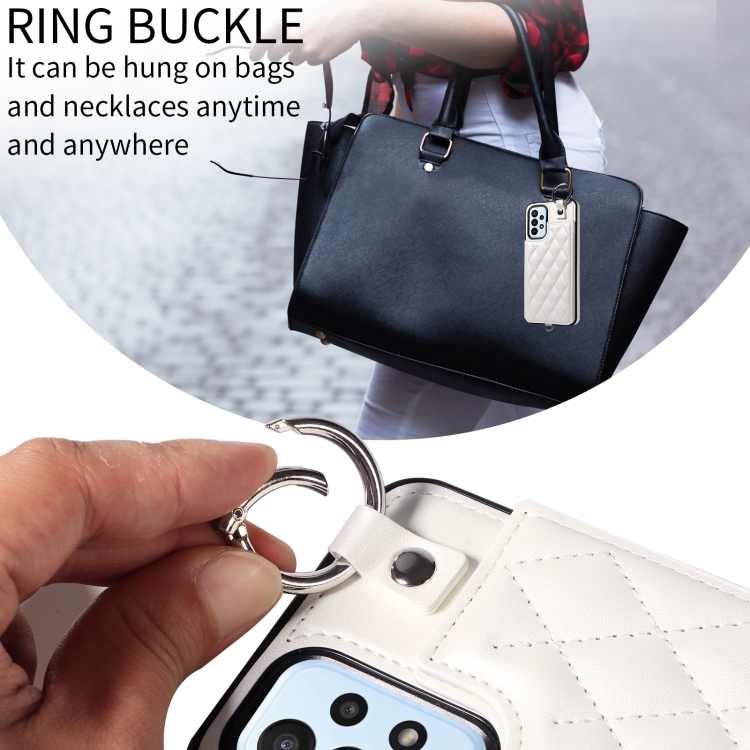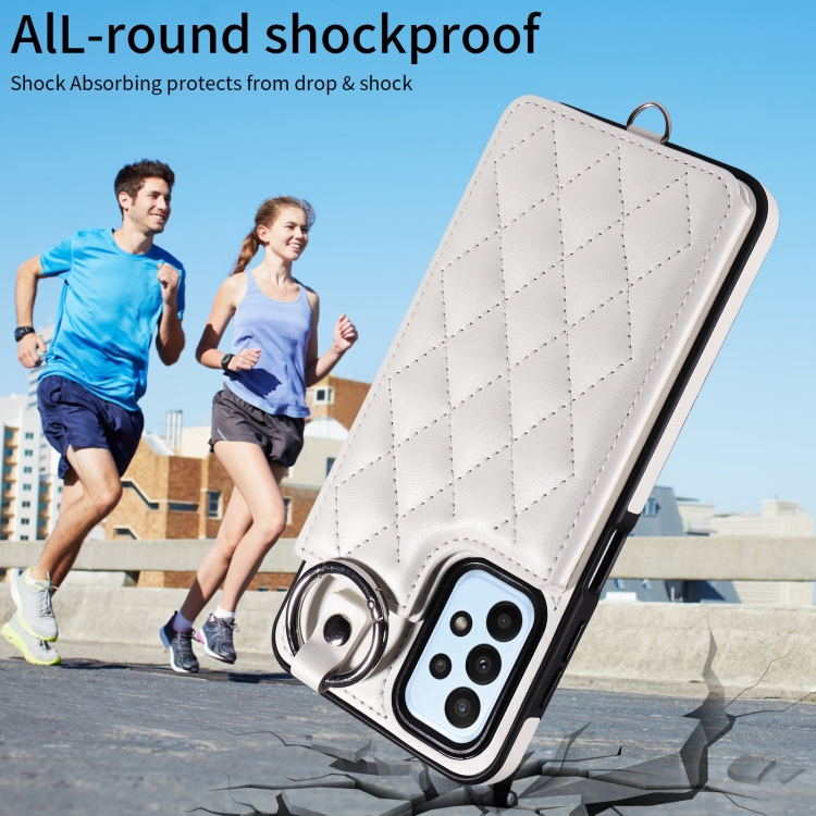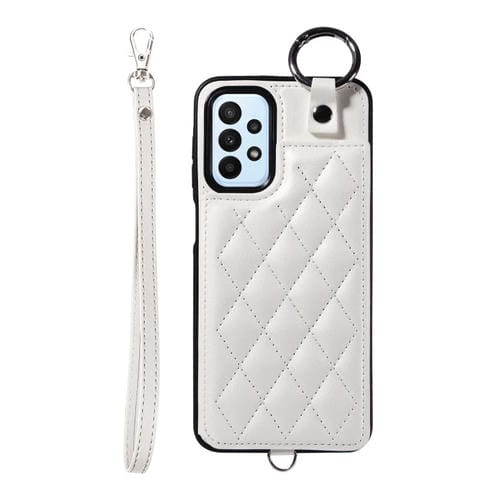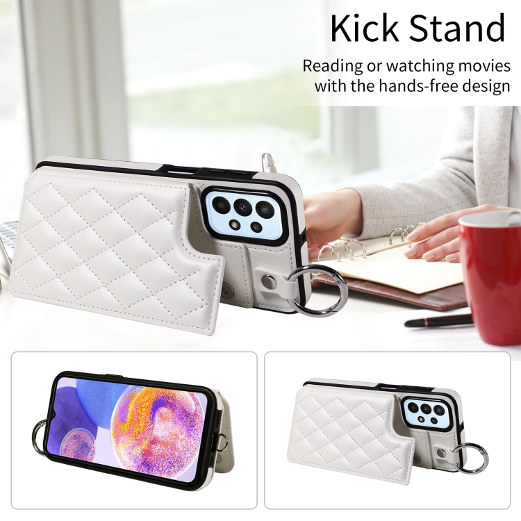 Estuche para Teléfono Samsung Galaxy A23 con Bolsa para Tarjetas Textura Rómbica y Cordón Corto (Blanco)