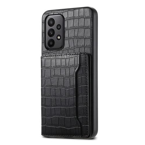 Estuche para Teléfono Samsung Galaxy A23 Diseño Bolsa para Tarjetas Textura Cocodrilo (Negro)
