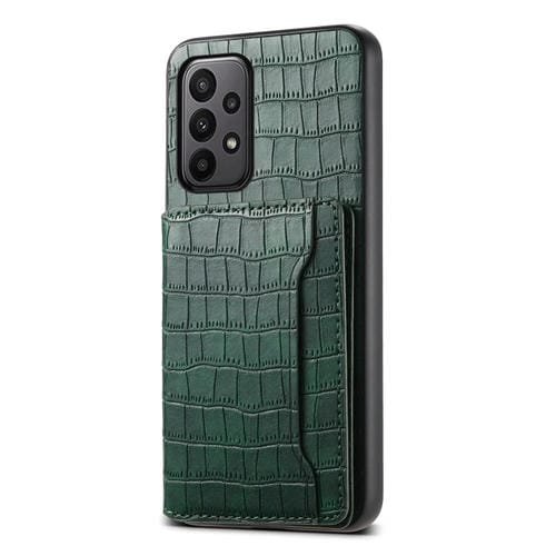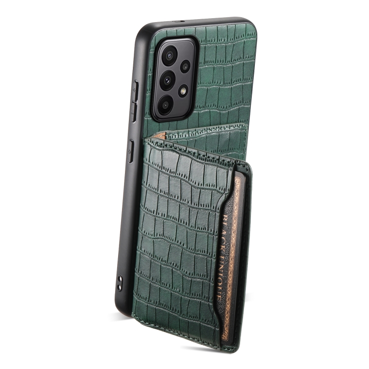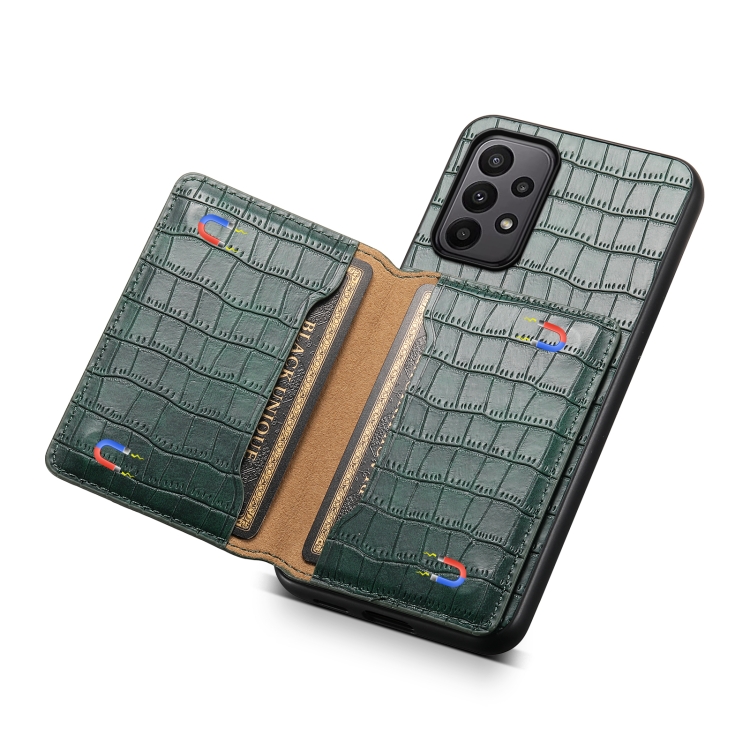 Estuche para Teléfono Samsung Galaxy A23 Bolsa para Tarjetas Textura de Cocodrilo (Verde)