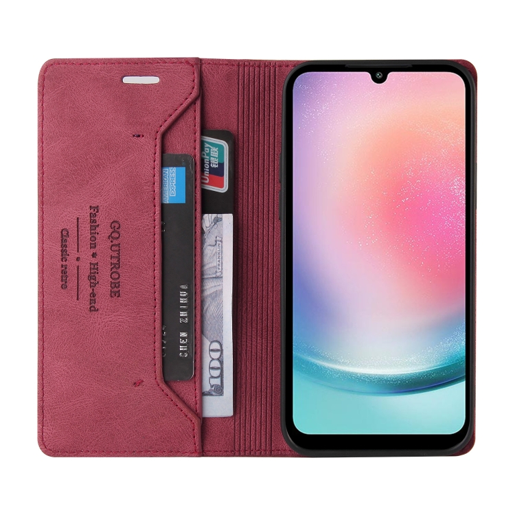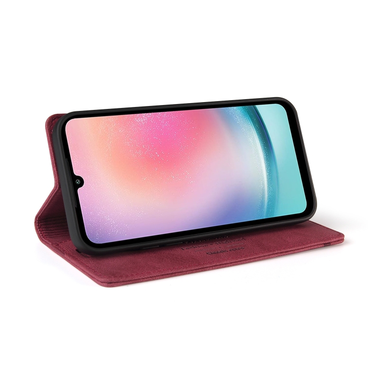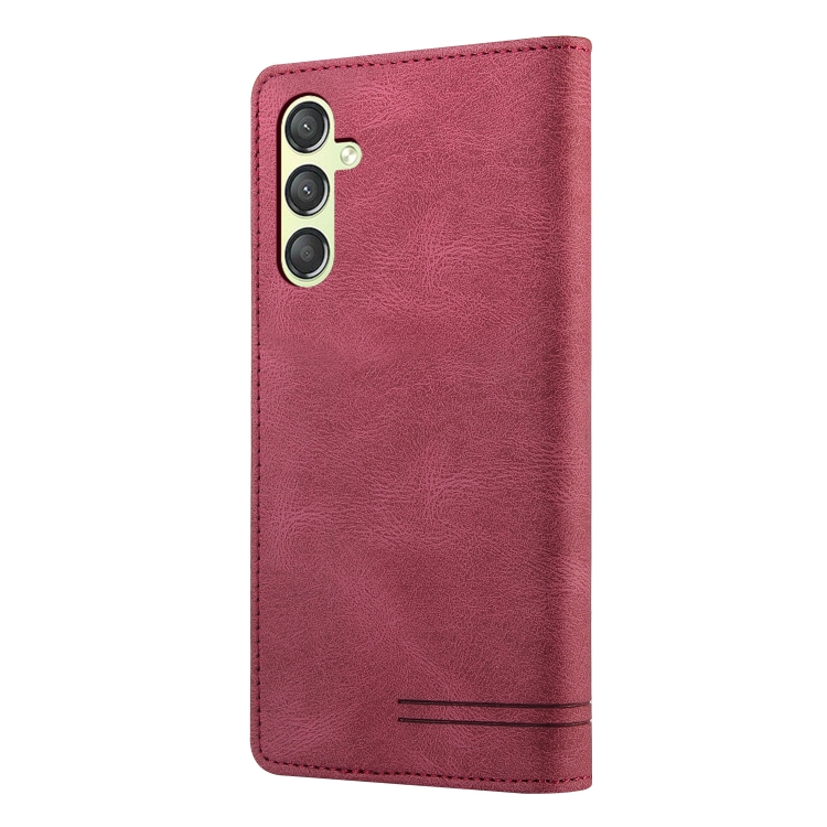 Funda de Cuero para Samsung Galaxy A24 5G Skin Feel con Tapa Horizontal Cepillo Antirrobo y Soporte (Rojo Vino)
