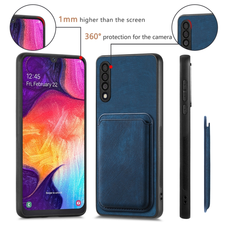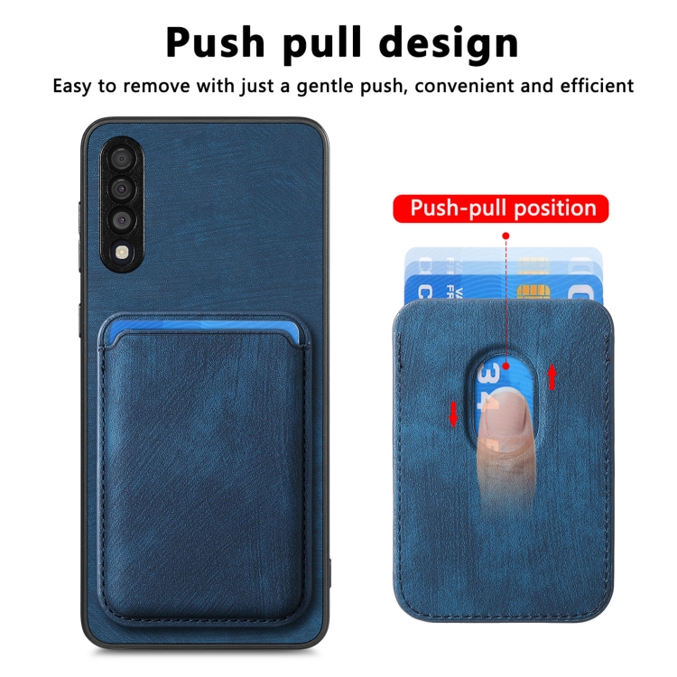 Funda de Teléfono Samsung Galaxy A30S Magnética con Bolsa de Tarjeta de Cuero Retro (Azul)