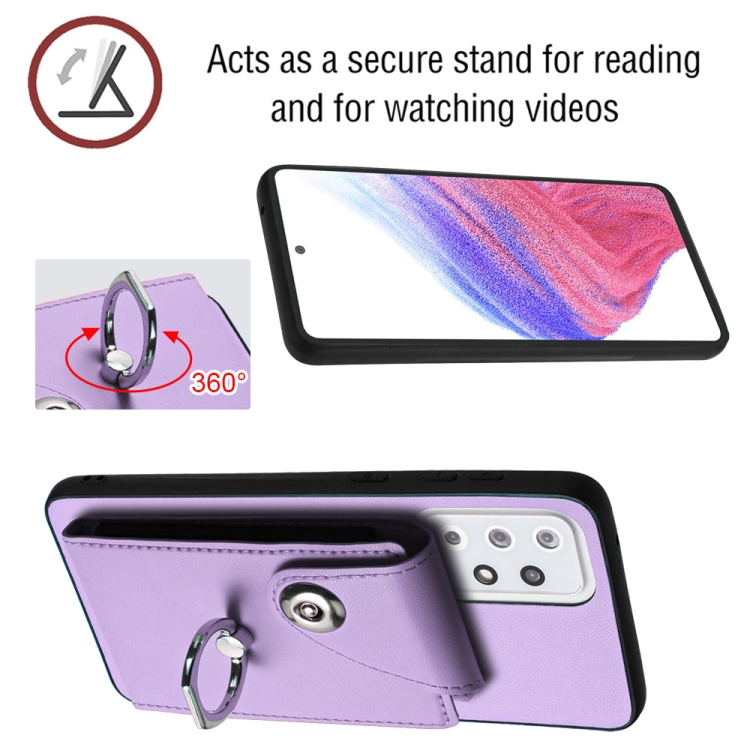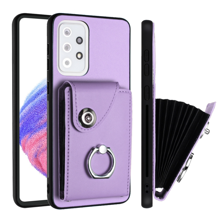 Funda para teléfono Samsung Galaxy A33 5G de PU con soporte para anillo y bolsa para tarjeta de órgano (Púrpura)