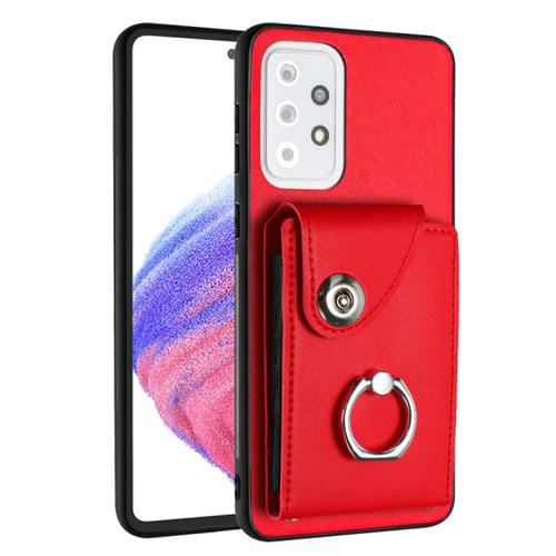 Funda para Teléfono Samsung Galaxy A33 5G de PU con Soporte para Anillo y Bolsa para Tarjeta (Rojo)