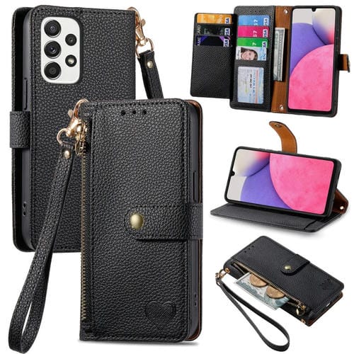 Funda para Samsung Galaxy A33 5G Love Zipper Lanyard Cuero para Teléfono (Negro)