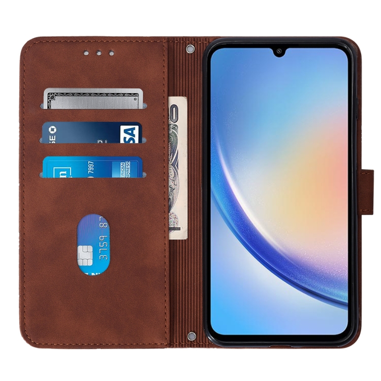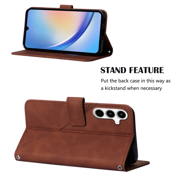 Funda para Samsung Galaxy A35 5G Crossbody de Cuero con Tapa en Relieve 3D (Marrón)