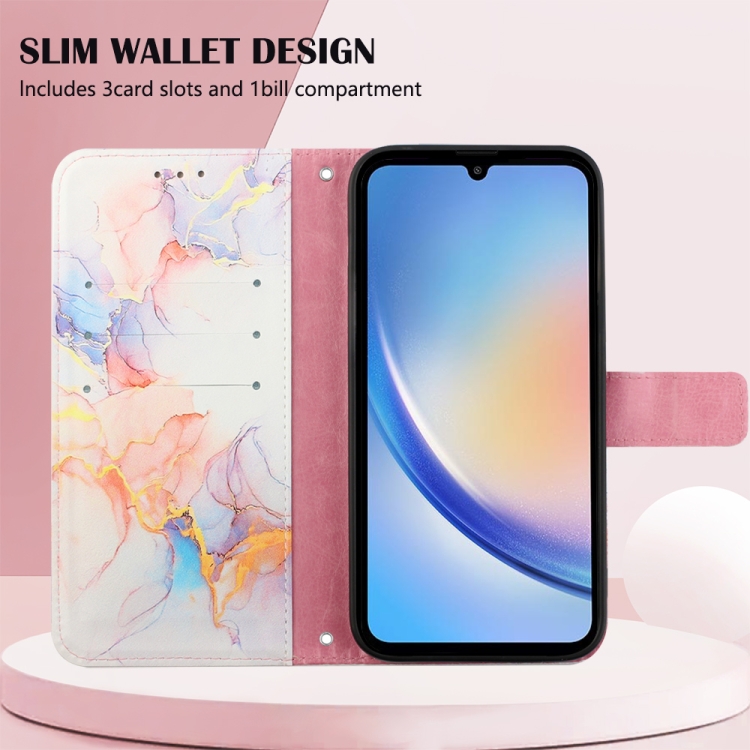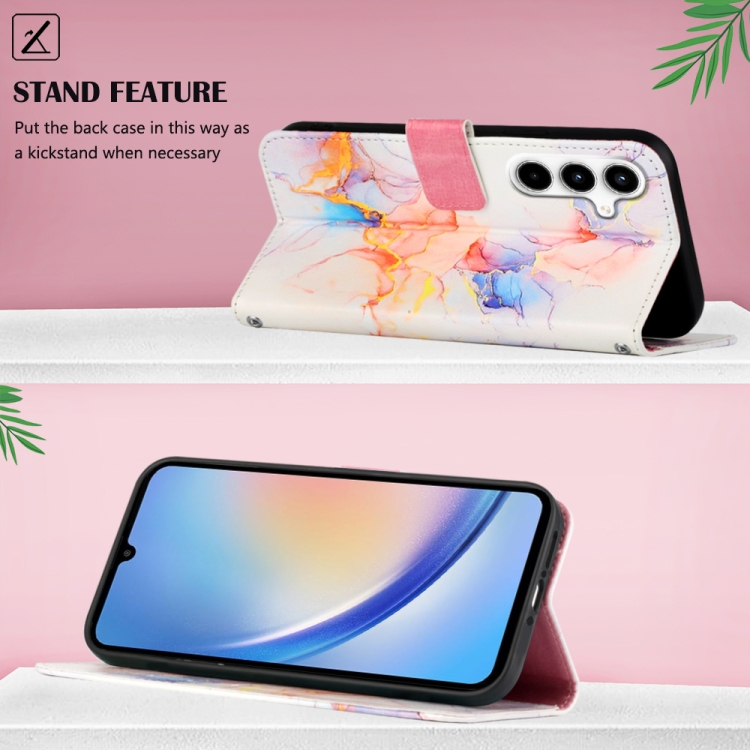 Funda de Cuero para Samsung Galaxy A35 5G Pt003 con Tapa y Patrón Mármol (Blanco)