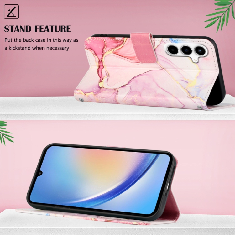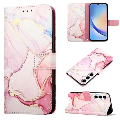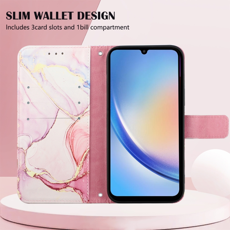 Funda de Cuero Samsung Galaxy A35 5G Pt003 con Tapa y Patrón de Mármol (Oro Rosa)