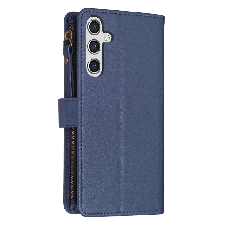 Funda para Samsung Galaxy A35 Cartera con 9 Ranuras para Tarjetas Cremallera Cuero con Tapa (Azul)