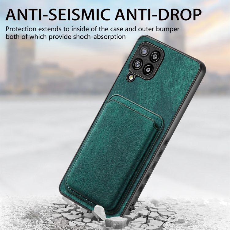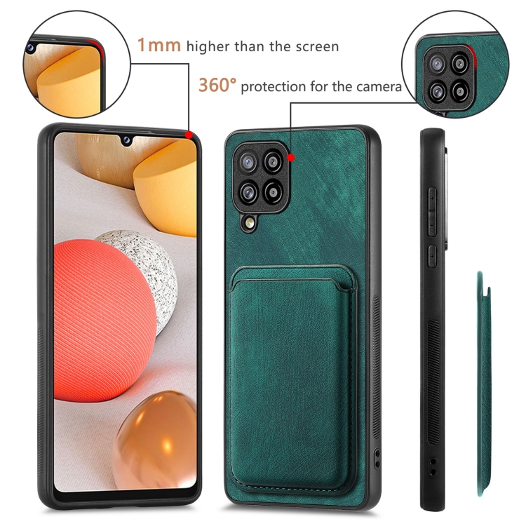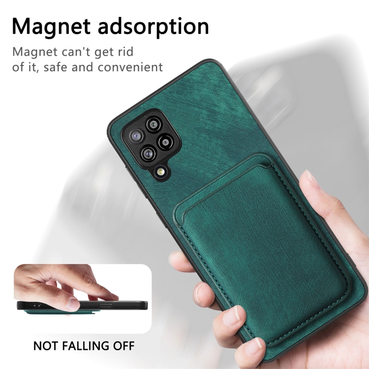 Funda de Teléfono Samsung Galaxy A42 5G Magnética con Bolsa de Tarjeta de Cuero Retro (Verde)