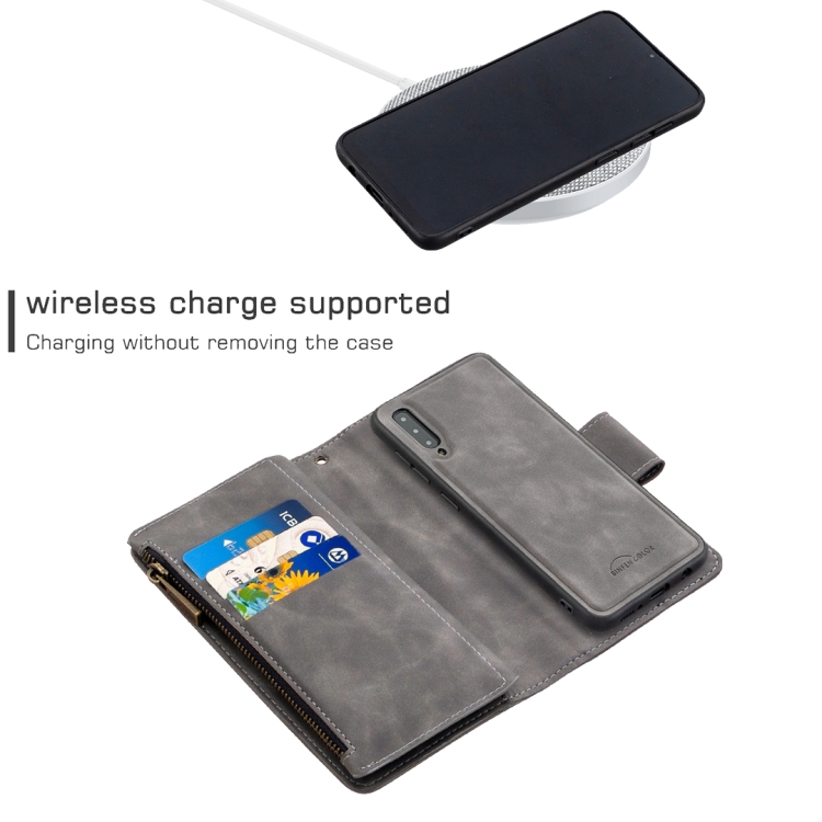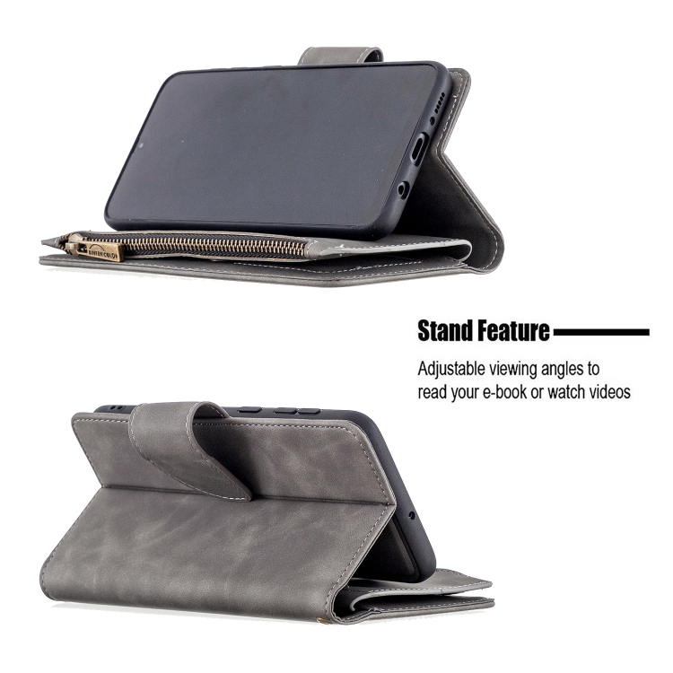 Estuche para Samsung Galaxy A50 A30S A50S Cuero PU Cremallera Magnética Tapa Horizontal Ranuras Tarjetas Soporte Billetera Marco Fotos Cordón (Gris)