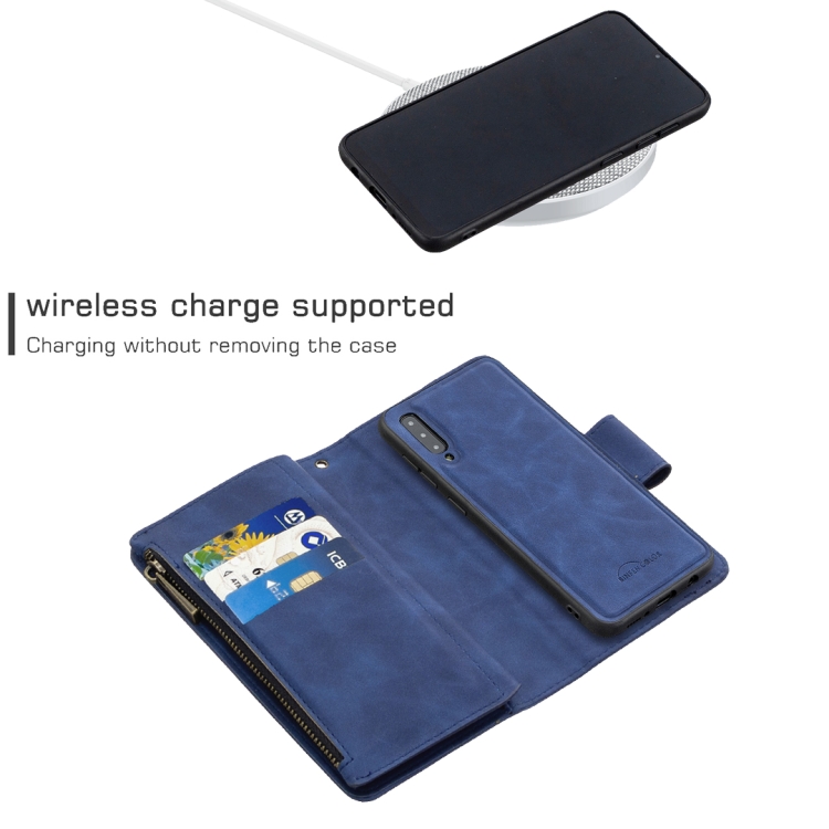 Estuche para Samsung Galaxy A50 A30S A50S Cuero Pu Cremallera Magnética Tapa Horizontal Ranuras Tarjetas Soporte Billetera Marco Fotos Cordón (Azul)
