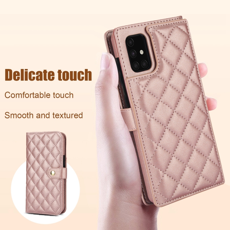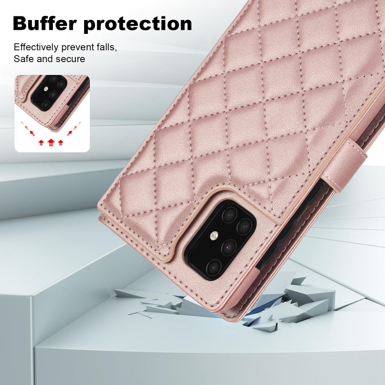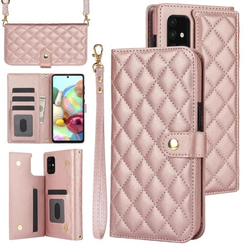 Funda Cruzada de Cuero Samsung Galaxy A51 4G Multifunción (Oro Rosa)