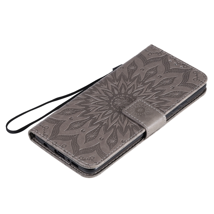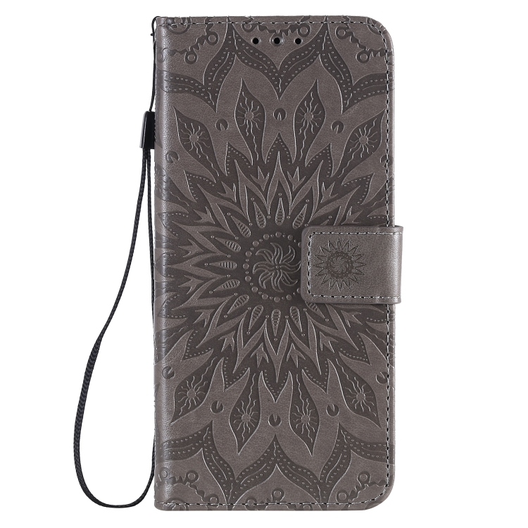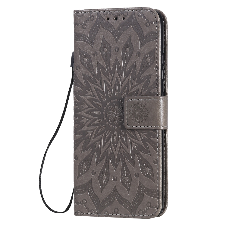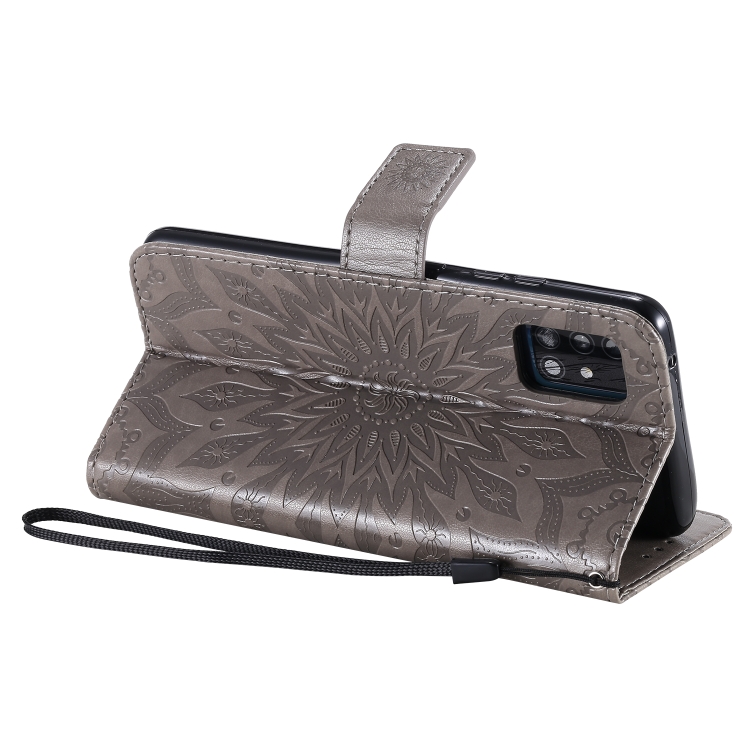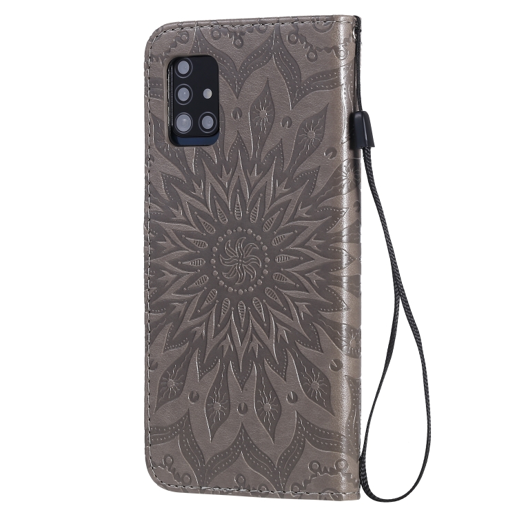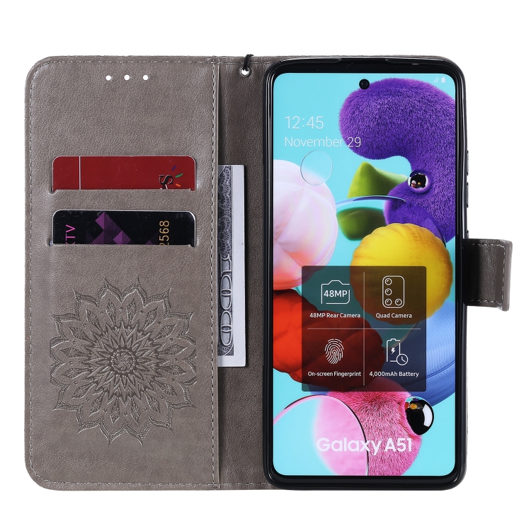 Estuche para Samsung Galaxy A51 5G Cuero Pu Diseño Girasol En Relieve Soporte Ranuras Tarjetas Billetera Cordón (Gris)