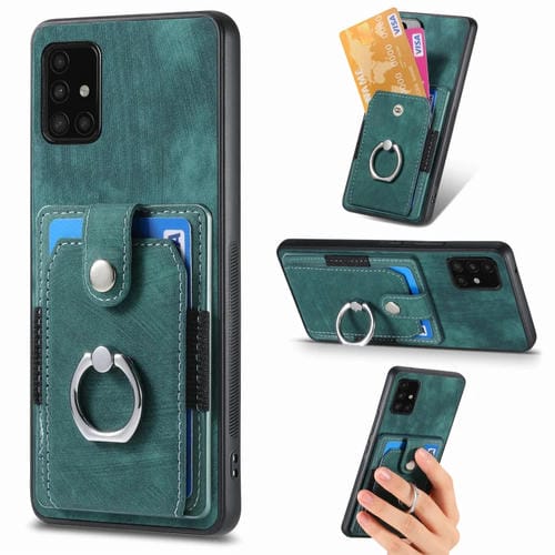 Funda para Teléfono Samsung Galaxy A51 con Billetera y Tarjeta con Anillo Sensación de Piel Retro (Verde)