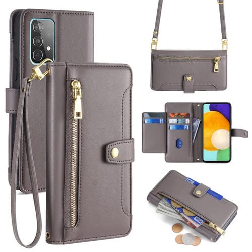 Funda para Teléfono Samsung Galaxy A52 5G 4G A52S 5G Cuero Billetera Cremallera Textura Oveja (Gris)