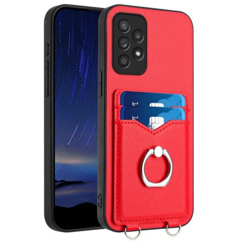Estuche para Teléfono Samsung Galaxy A52 R20 con Soporte para Tarjeta y Anillo (Rojo)