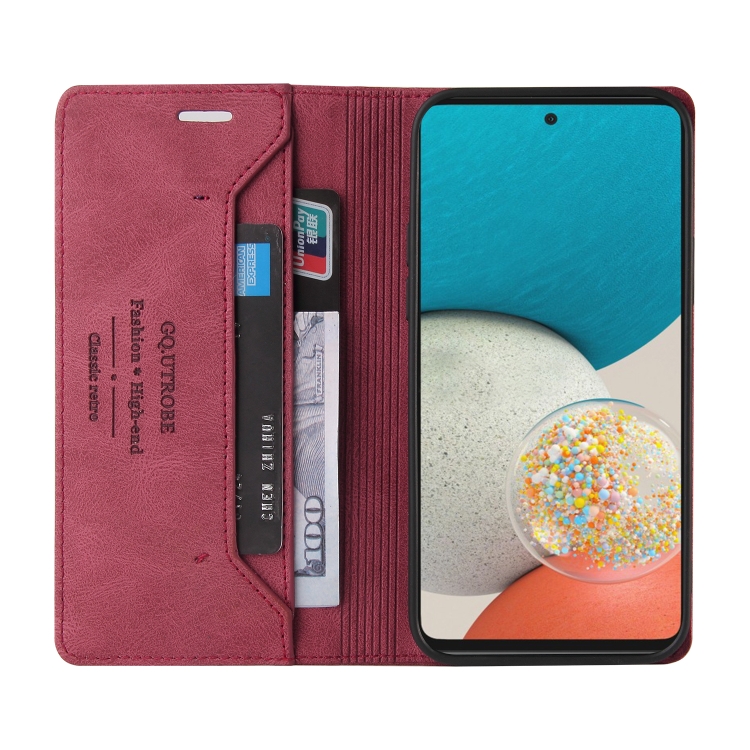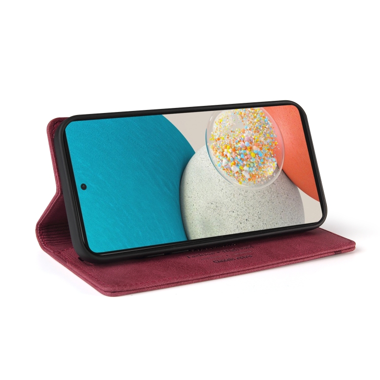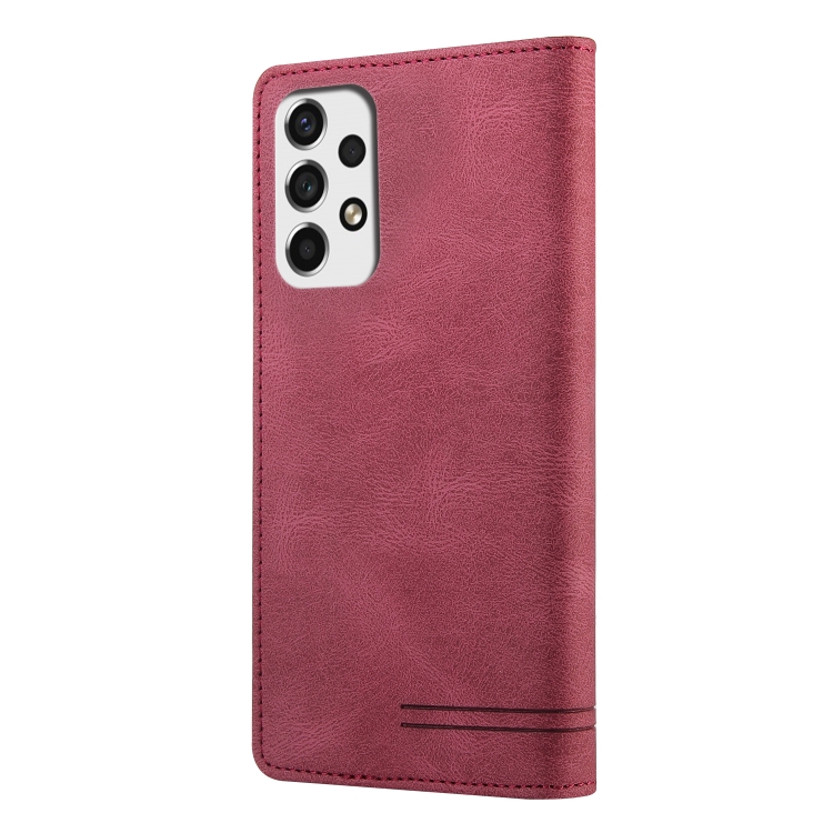 Funda de Cuero para Samsung Galaxy A53 5G Skin Feel con Tapa Horizontal Cepillo Antirrobo y Soporte (Rojo Vino)