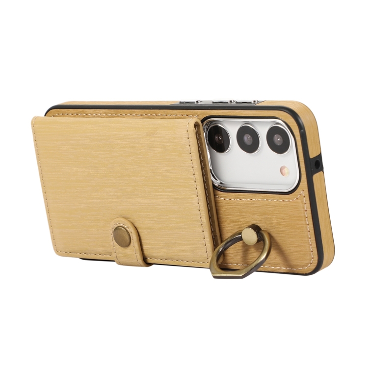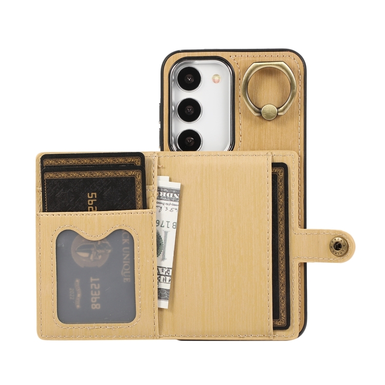 Funda para Teléfono Samsung Galaxy A54 5G con Soporte para Anillo y Billetera con Textura Cepillada (Amarillo)