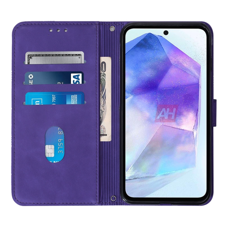 Funda Crossbody para Samsung Galaxy A55 Cuero Tapa En Relieve 3D (Púrpura)