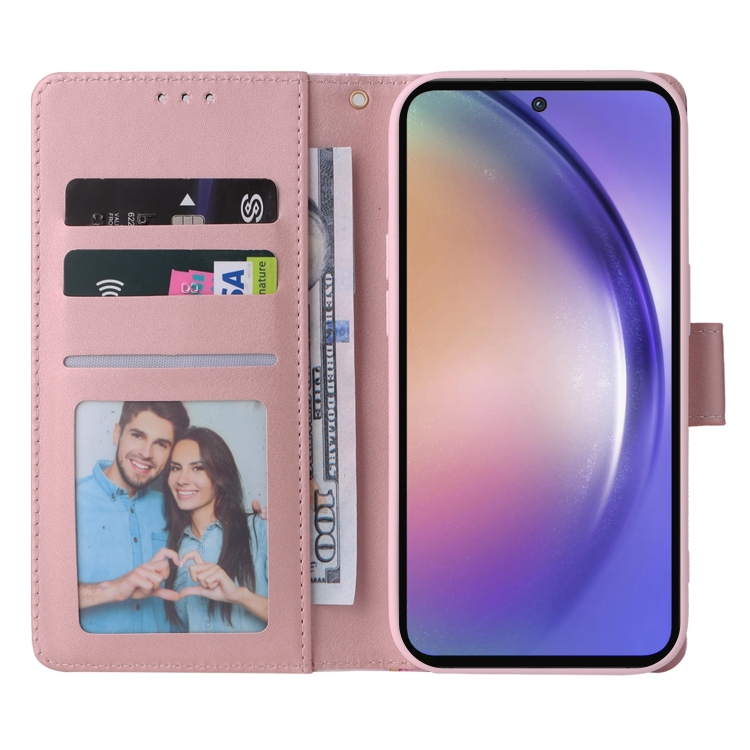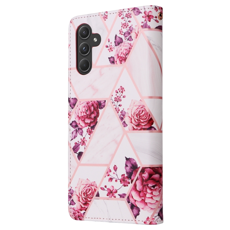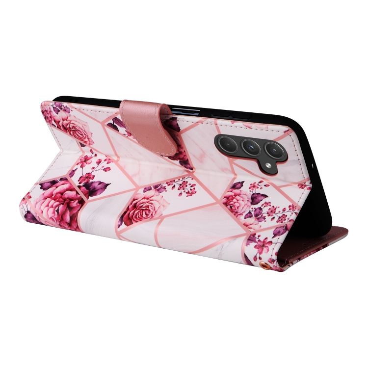 Funda de Cuero Samsung Galaxy A55 con Costuras Bronceadoras Mármol (Oro Rosa)