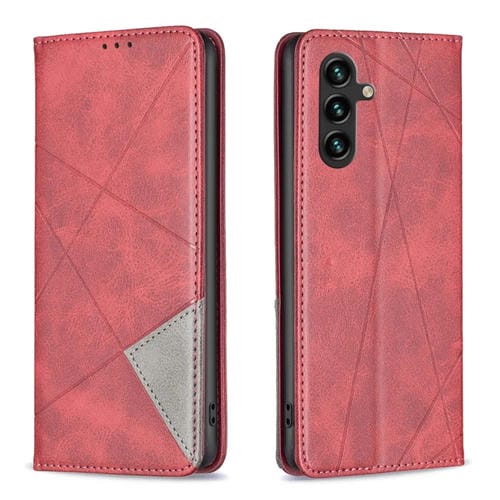 Funda de Teléfono Samsung Galaxy A55 Cuero Magnético Textura Rombo (Rojo)