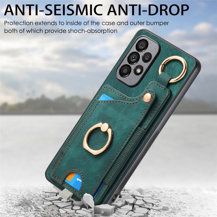 Funda para Teléfono Samsung Galaxy A70 A70S con Bolsa para Tarjeta Anillo y Lazo (Verde)