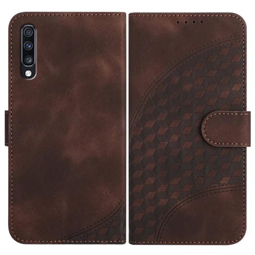 Funda para Teléfono Samsung Galaxy A70 Yx0060 Cuero Relieve Cabeza de Elefante con Cordón (Café)
