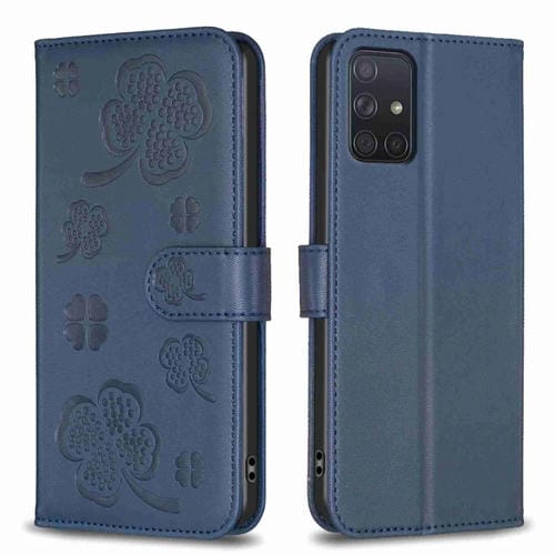 Funda de Cuero Samsung Galaxy A71 4G con Relieve de Cuatro Hojas (Azul)