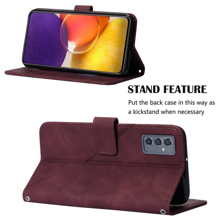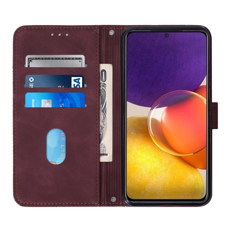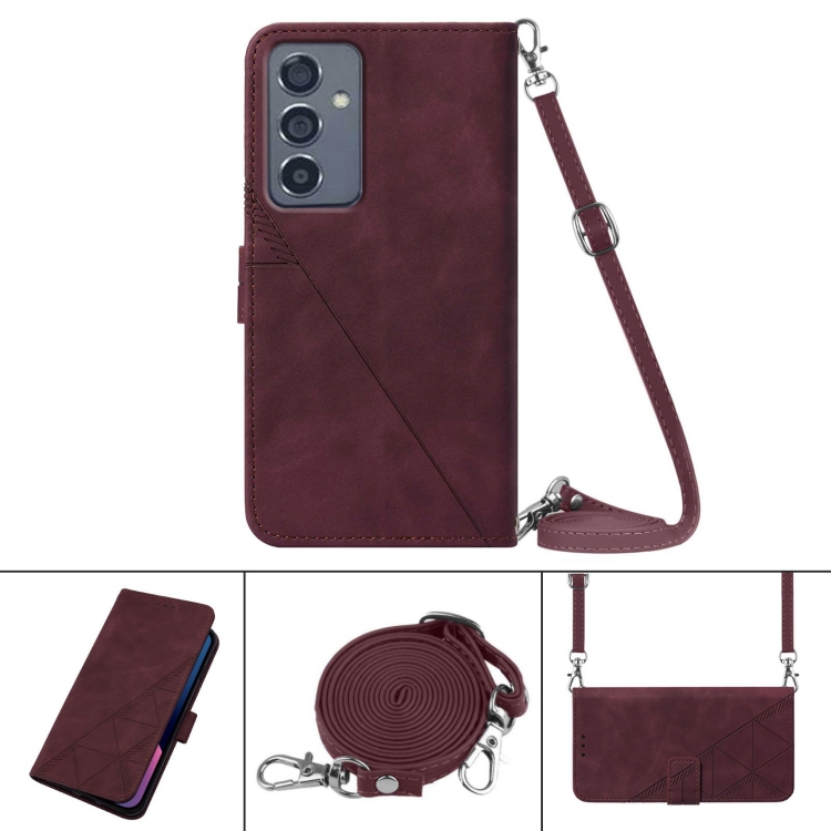 Funda Crossbody 3D de Cuero para Samsung Galaxy A82 5G (Rojo del Vino)
