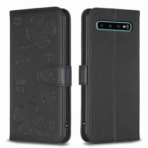 Funda para Samsung Galaxy S10 + Cuero con Relieve de Cuatro Hojas (Negro)