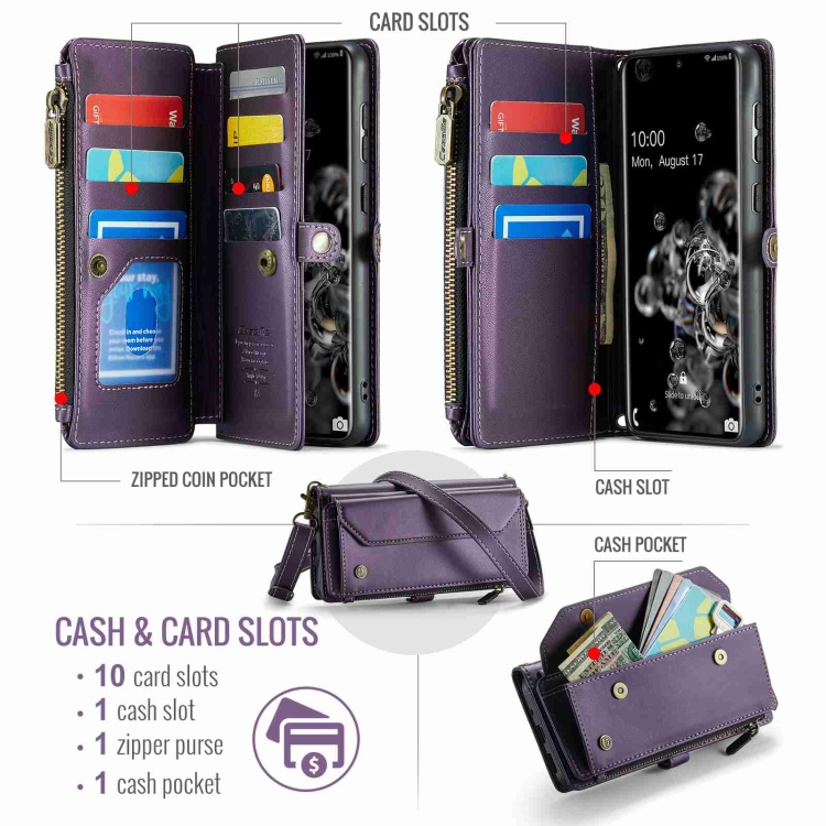Estuche para Teléfono Caseme C36 para Samsung Galaxy S20 Ultra Cartera con Cremallera Ranuras para Tarjetas Cuero Antirrobo Rfid (Púrpura)