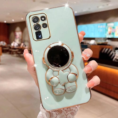 Estuche para teléfono Samsung Galaxy S20 Ultra Embrace Stars con soporte para astronauta galvanizado (Verde)