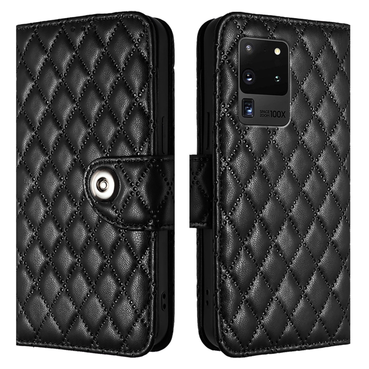Estuche para Teléfono Samsung Galaxy S20 Ultra con Tapa de Cuero Textura Rómbica y Cordón (Negro)