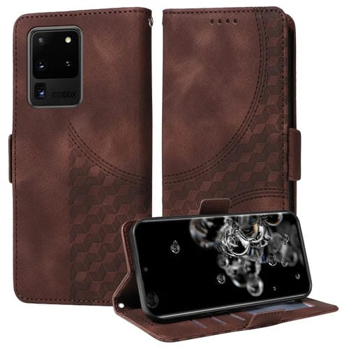 Estuche para Teléfono Samsung Galaxy S20 Ultra Cuero Estrellado con Rombos En Relieve (Marrón)