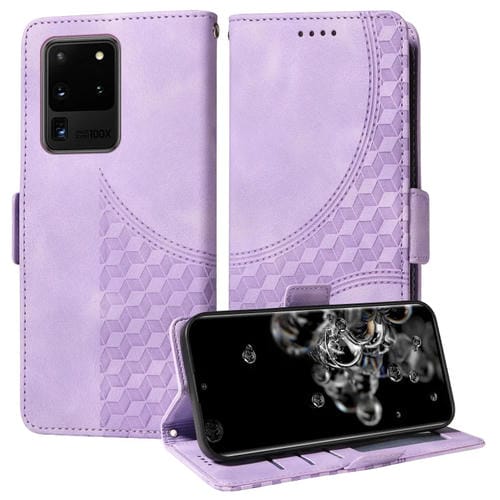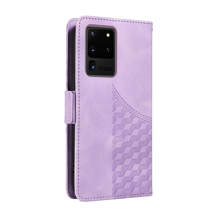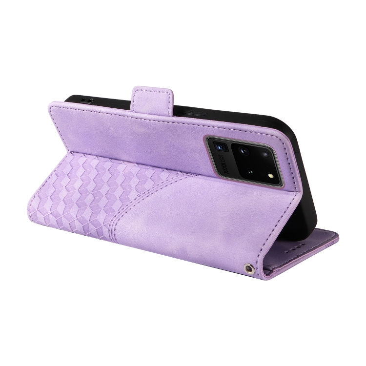 Estuche para Teléfono Samsung Galaxy S20 Ultra Cuero Estrellado Rombos En Relieve (Púrpura)
