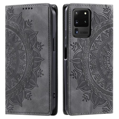 Funda de Cuero Magnética Samsung Galaxy S20 Ultra Totem En Relieve (Gris)