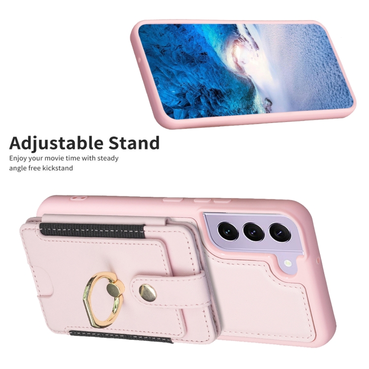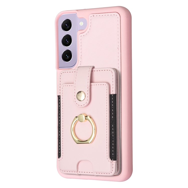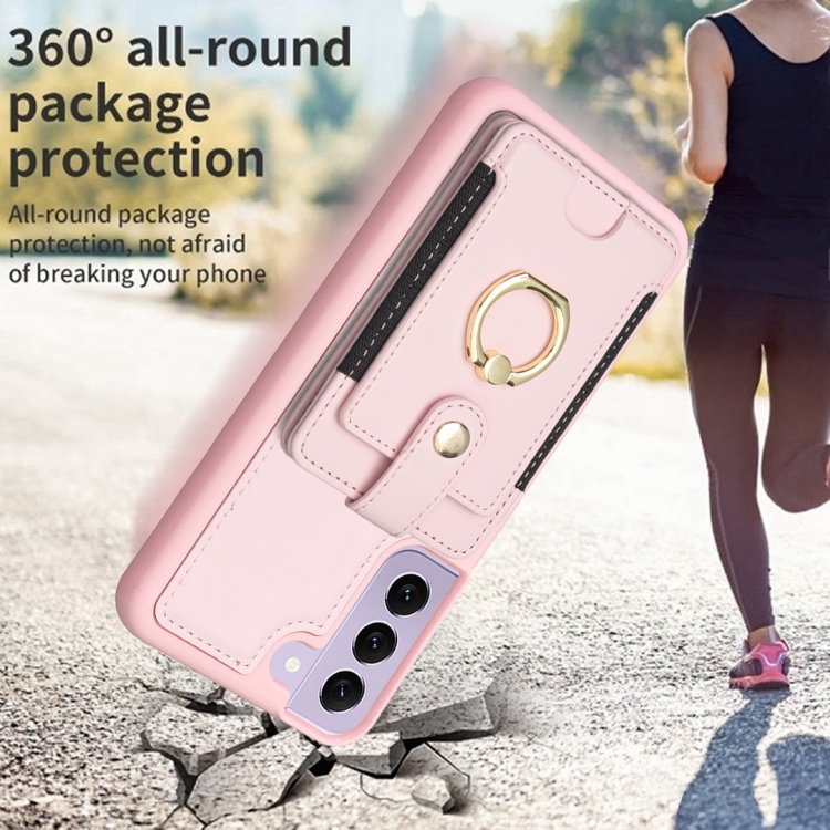 Para Samsung Galaxy S21 5G BF27 Anillo de metal Tarjeta Bolsa Titular Caja del teléfono (Rosa)