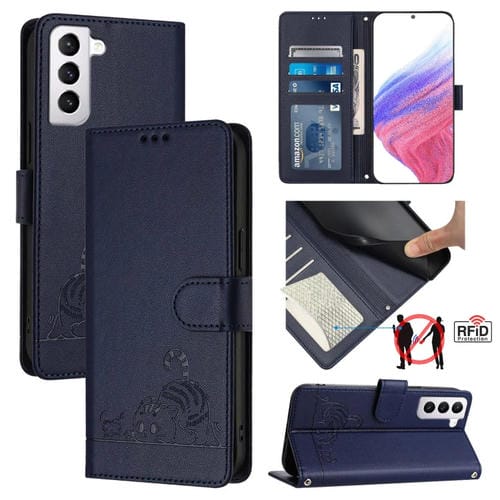 Estuche para teléfono Samsung Galaxy S21 5G Cuero Rfid Patrón en Relieve con Cordón (Azul)