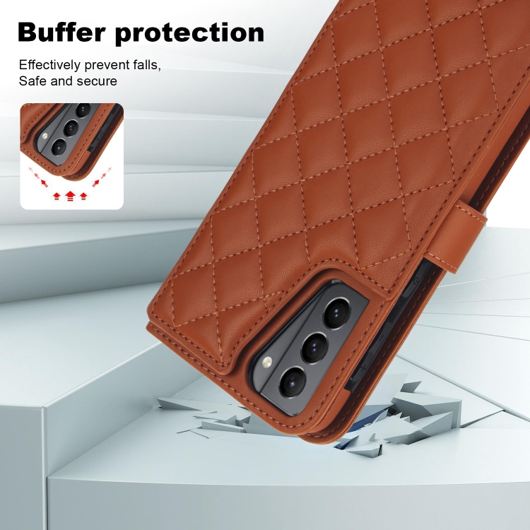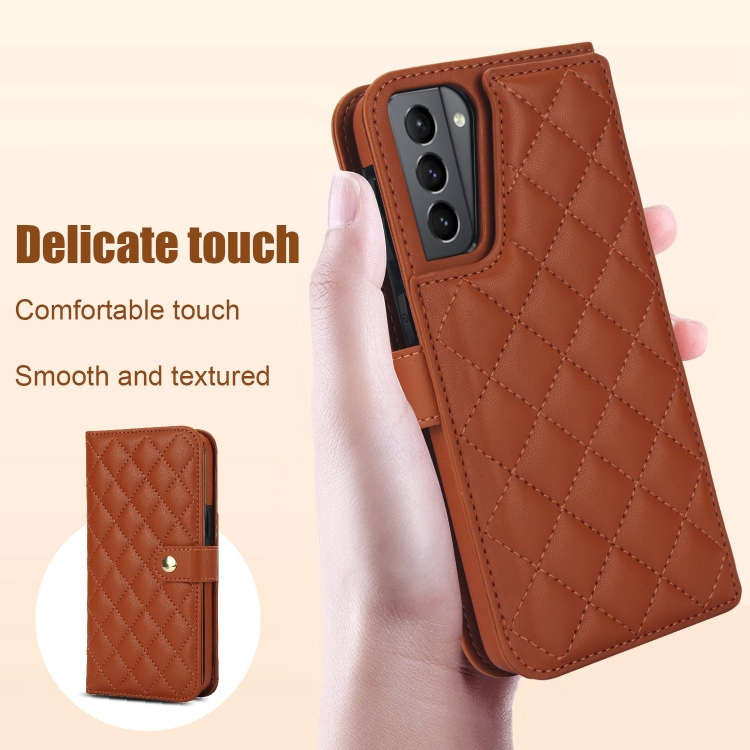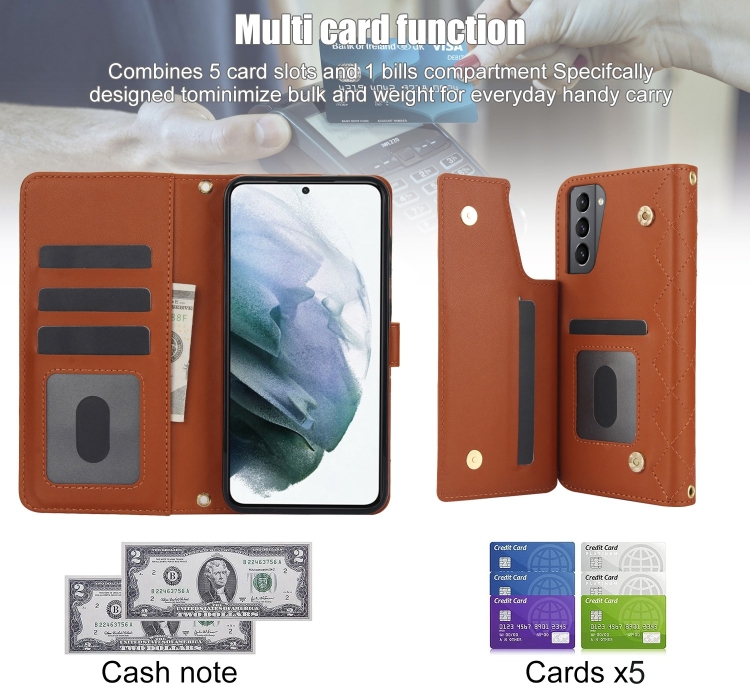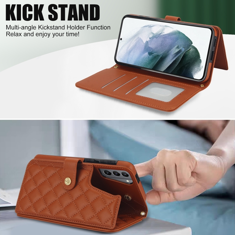 Estuche para Teléfono Samsung Galaxy S21+ 5G Crossbody Cuero Rómbico Multifunción (Marrón)