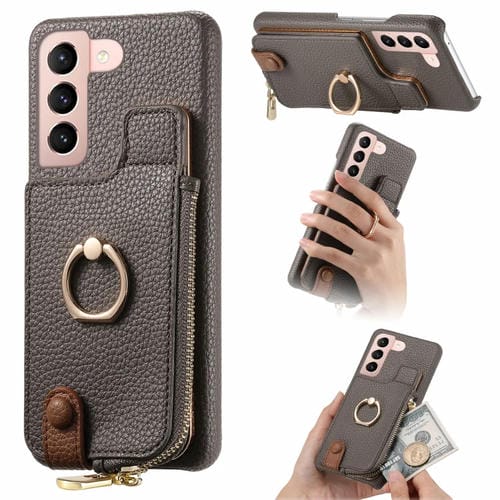 Funda para teléfono Samsung Galaxy S21 5G Litchi Leather Oil Edge Ring Zipper Wallet (Gris)