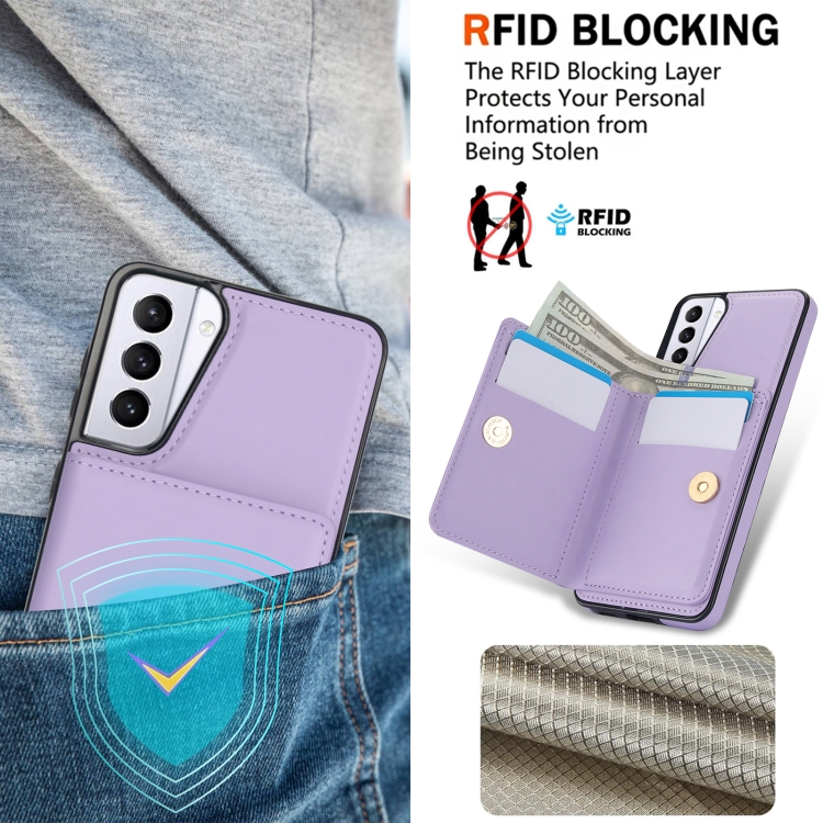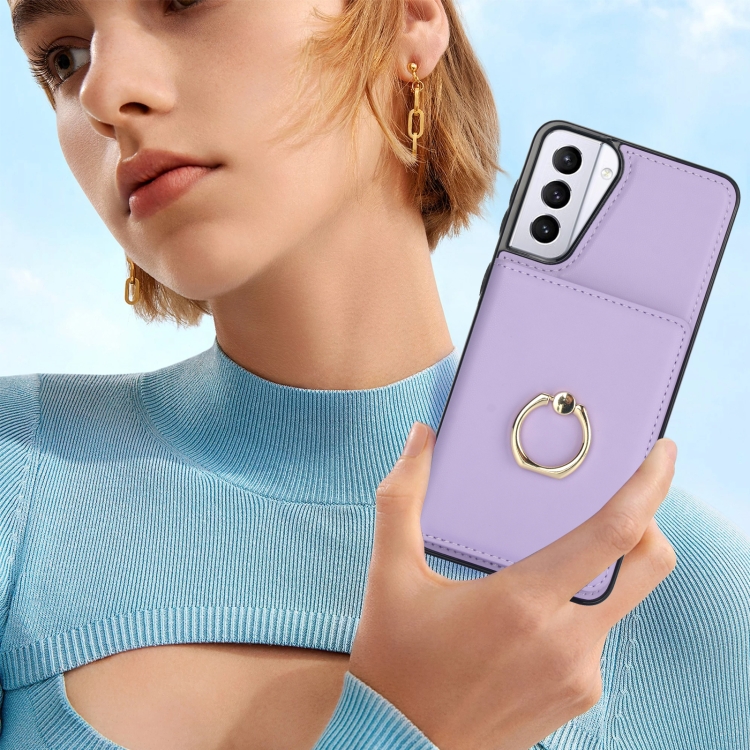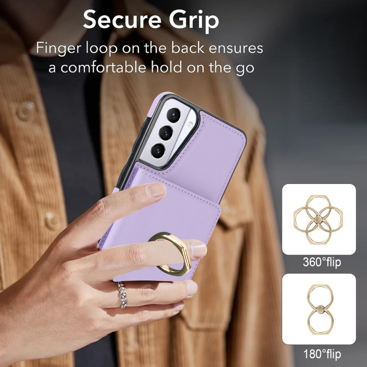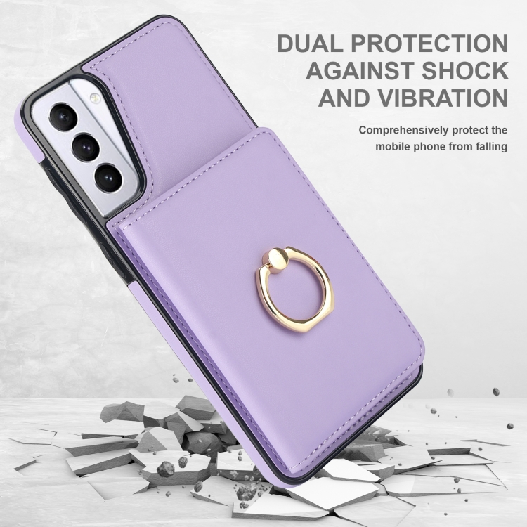 Estuche para Teléfono Samsung Galaxy S21 5G Rfid Tarjeta Antirrobo con Soporte para Anillo (Púrpura)