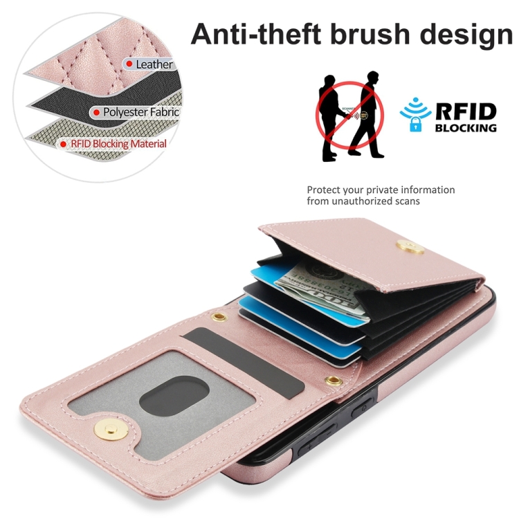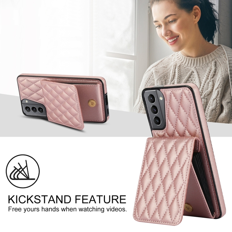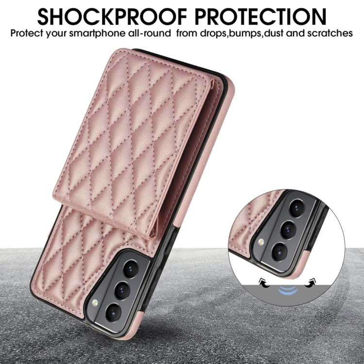 Estuche Cruzado para Teléfono Samsung Galaxy S21+ 5G Ym015 con Tarjeta Rómbica Rfid (Oro Rosa)