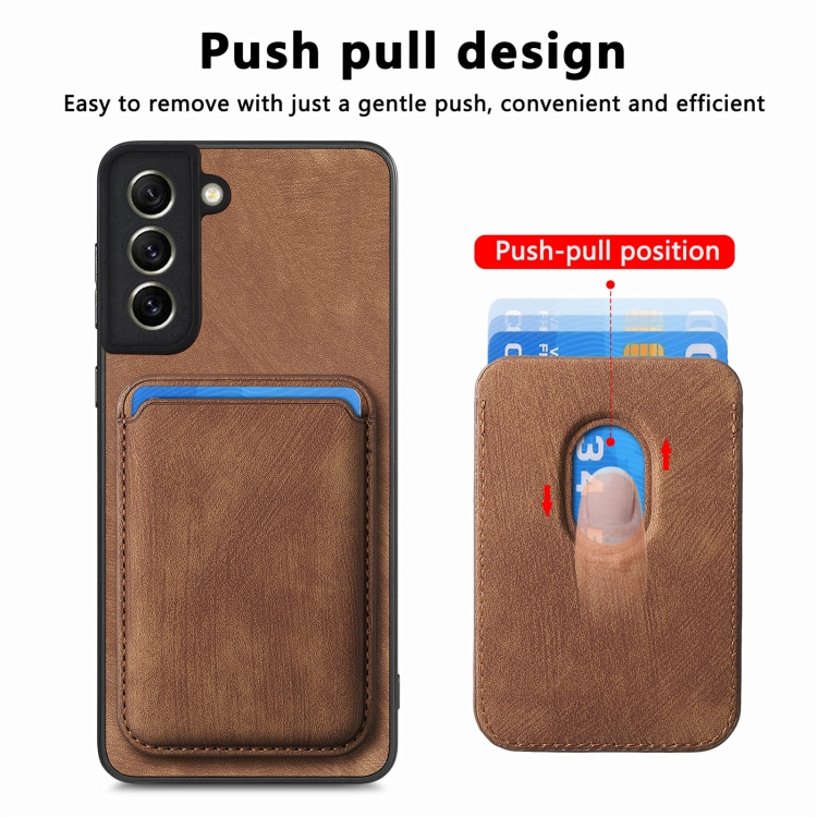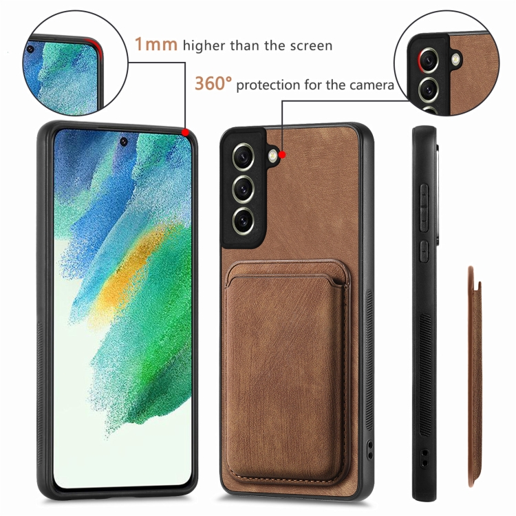 Funda de Teléfono Samsung Galaxy S21 FE 5G Magnética con Bolsa de Tarjeta de Cuero Retro (Marrón)