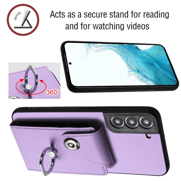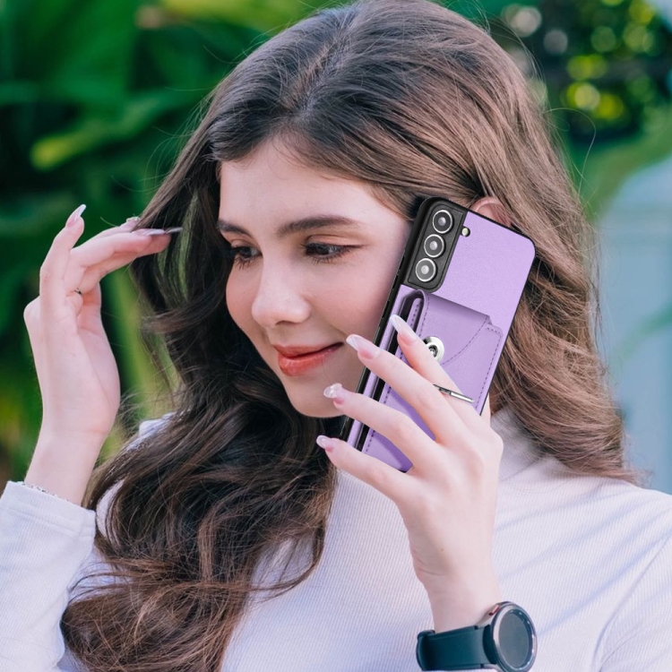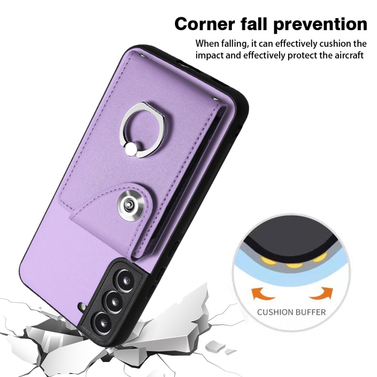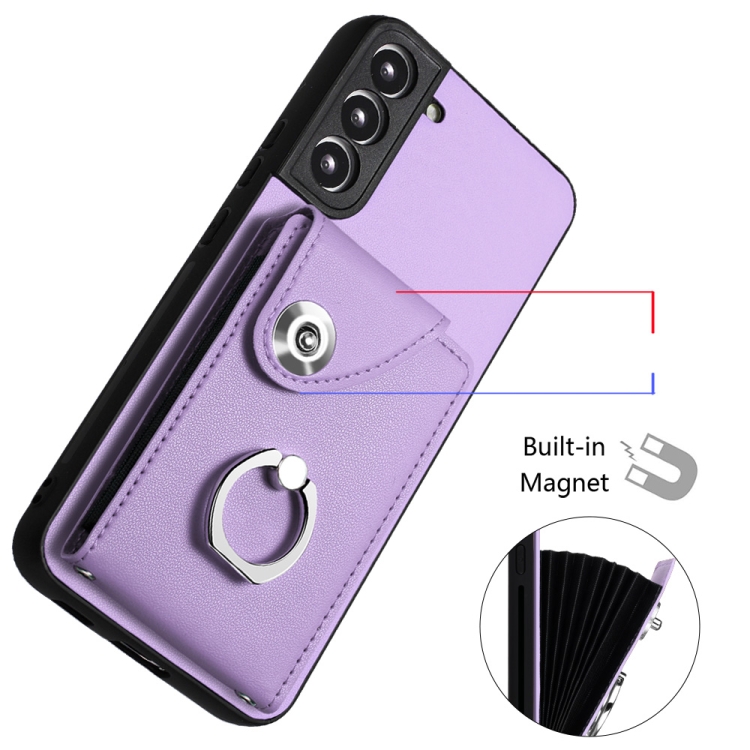 Funda para Teléfono Samsung Galaxy S21 FE 5G Pu con Soporte para Anillo y Bolsa para Tarjeta (Púrpura)