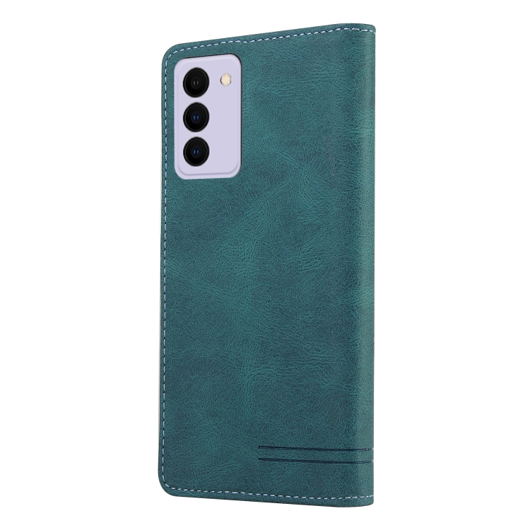 Funda de Cuero para Samsung Galaxy S21 FE 5G con Tapa Horizontal Cepillo Antirrobo Soporte (Azul)