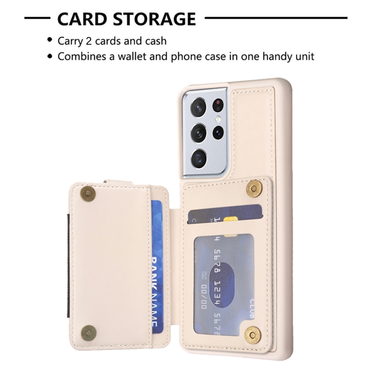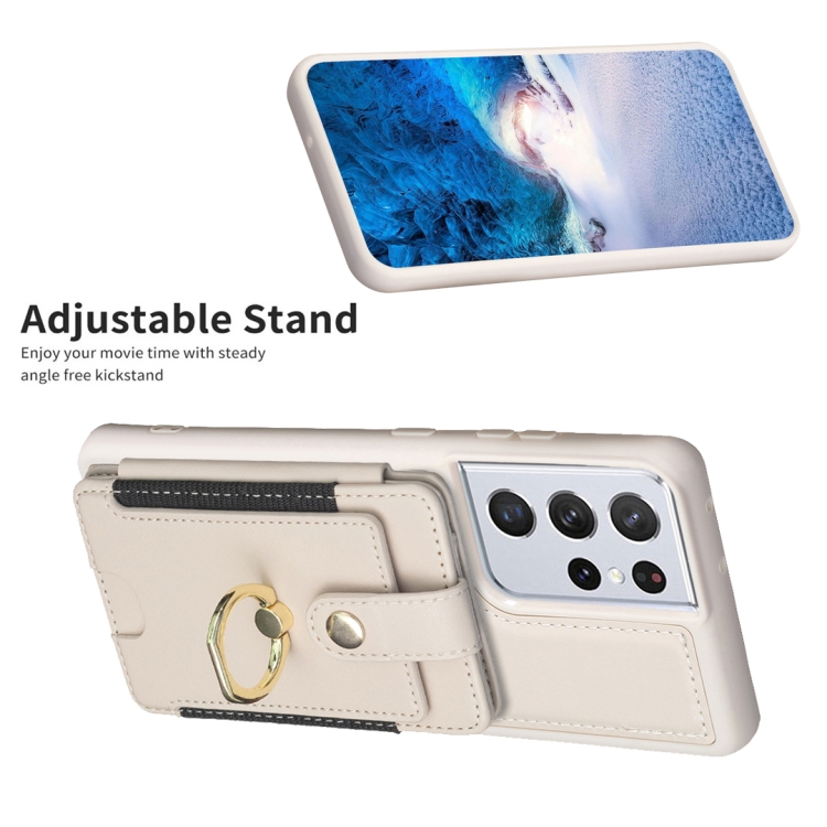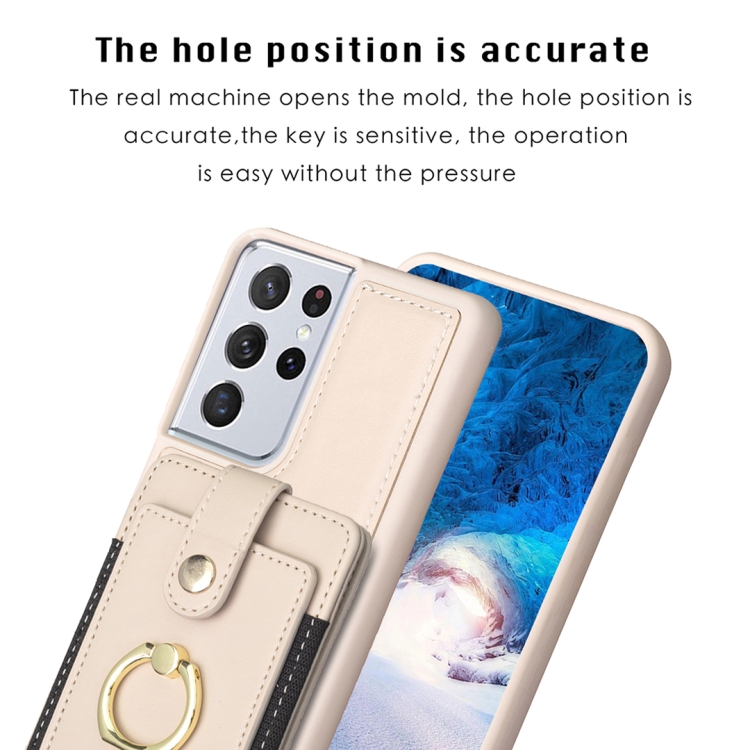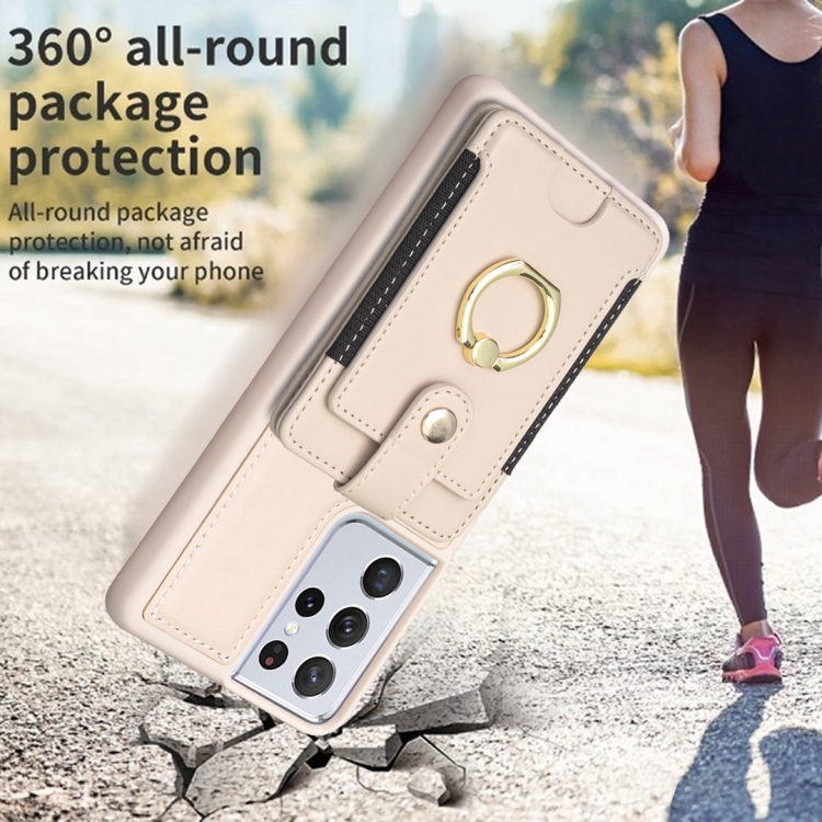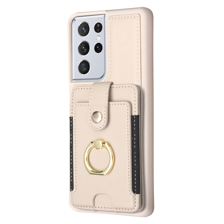 Para Samsung Galaxy S21 Ultra 5G BF27 Anillo de metal Tarjeta Bolsa Titular Caja del teléfono (Beige)