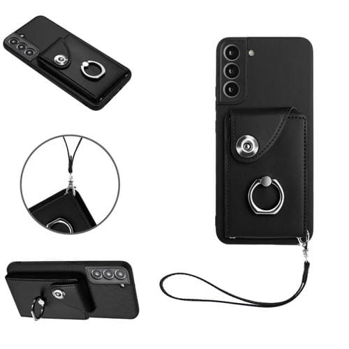 Funda para Teléfono Samsung Galaxy S22 + 5G Bolsa para Tarjeta Soporte para Anillo de PU con Cordón (Negro)