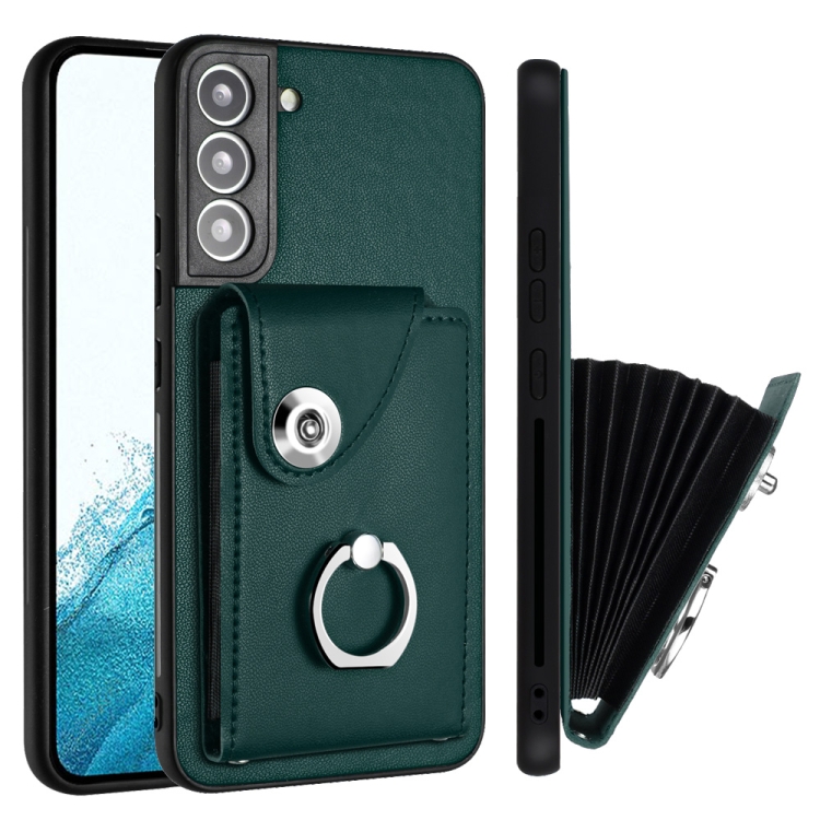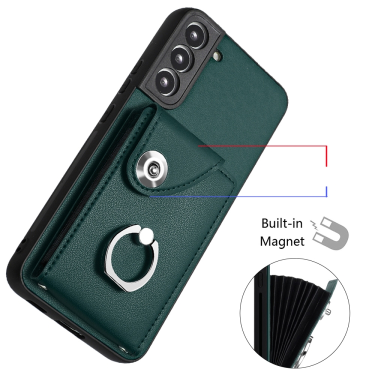 Funda para Teléfono Samsung Galaxy S22 + 5G de PU con Soporte para Anillo y Bolsa para Tarjeta (Verde)