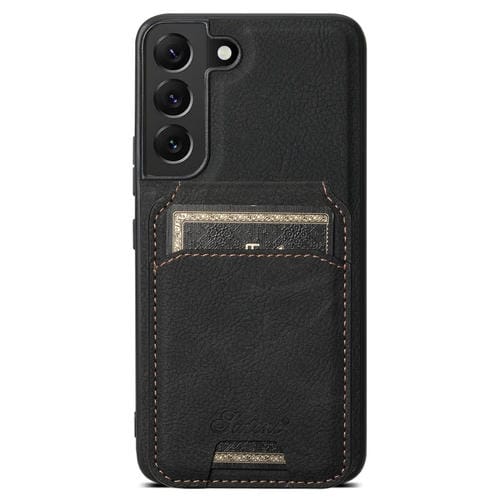 Funda para teléfono Suteni H16 para Samsung Galaxy S22 + 5G con billetera desmontable de cuero textura Litchi (Negro)