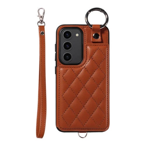 Estuche para Teléfono Samsung Galaxy S23 5G con Bolsa para Tarjetas y Cordón Corto (Marrón)